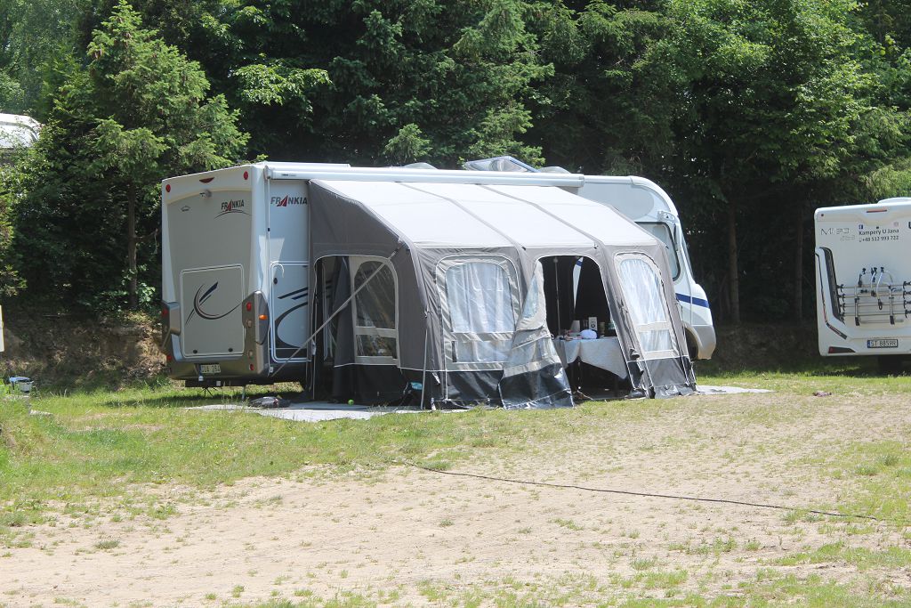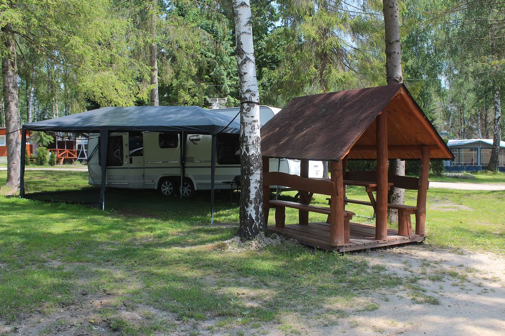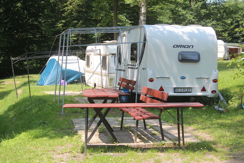 Przyczepy mogą przyjąć jednorazowo od 2 do 4 osób. Posiadają taras z miejscem na rozpalenie grilla. - sypialnia, - taras stół, krzesła, - aneks kuchenny - wyposażenie